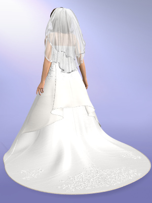 This is a traditional white princess cut wedding dress