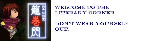Yo! You've reached the Literary Corner, the home of the non-anime related writings of the five of us. These literary works can include poems, short stories, or... other stuff. We're also accepting contributions of your original work. Just send whatever you got to the e-mail address at the bottom of the page and we'll read your work and hopefully post it here. On to the writings!