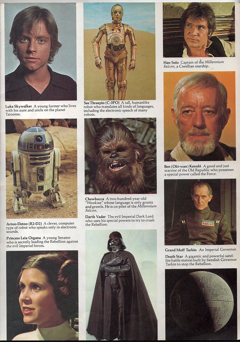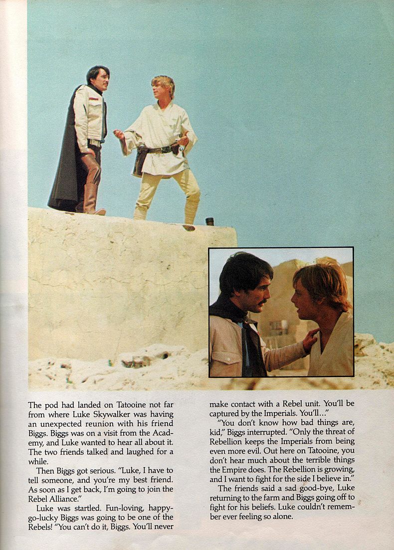 The Star Wars Storybook (pub. 1978) I've had this as long as I can remember, but I'm not sure where I got it. I think it actually belonged to my dad, originally, and I probably just sort of... appropriated it. I don't remember if I read this before or after the first time I saw Star Wars, but I do know it's fairly nostalgic to me. It has a bunch of film stills from the movie, as well as telling the whole story of the movie. But it has one page that talks about a scene that isn't actually in the movie, where Luke is talking to his old friend Biggs. Years later, after getting on the internet, I learned that there were other scenes that had been cut from the movie, which aren't even mentioned in this book. And I've always wanted to see all of those scenes. In 1997, when the movie was rereleased to theaters in Special Edition format, there was a scene with Biggs and Luke later in the movie, which is mentioned briefly in this book, though I didn't remember that. But the earlier scene still isn't in the movie. In 2006 there were limited edition releases of the first three movies, which included the special editions and original theatrical versions. I really wanted to get those, but at the time I couldn't afford them (even though they weren't expensive at all), and of course now they'd be several times more expensive, which is annoying as hell. Maybe someday I'll get them, but I think they may still not include this scene (which I have no idea if it was in the movie when it was first in theaters in 1977, or not). There are also Storybooks for "Empire Strikes Back" and "Return of the Jedi," but I've never seen those books. I'd totally like to, and they shouldn't be hard (or expensive) to get.