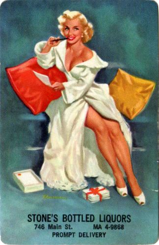 This is a card from a deck that I saw at my grandparents' house when I was young, then didn't see them again for years. But then one day I did see them again, so I scanned one. BTW, obviously, this and several other sets of cards in my collection involve the objectification of women- whether real, fictional, or just drawings/paintings- which I think is terrible. But... I have conflicting feelings about it for various reasons, such as an interest in historical or nostalgic perspectives of art, and an interest in various entertainments or celebrities, and the understanding that anyone can have an appreciation for anyone else's physical appearance without discounting more important aspects of their being, which I don't believe necessarily qualifies as objectification, per se. Then again... all these things could just be excuses. So, maybe it's unacceptable... or maybe I'm just overthinking it. They're just cards, after all. Or maybe it's just unacceptable; that possibility bears repeating.