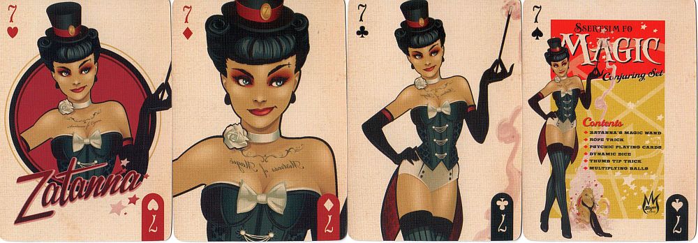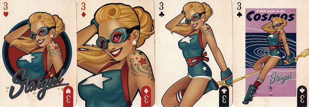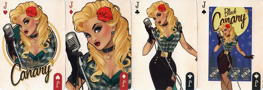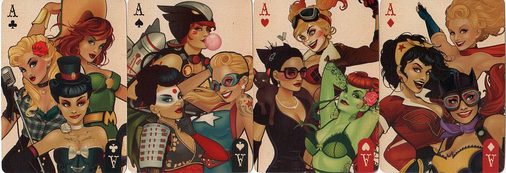 Playing cards based on women from various DC comics, drawn in a pin-up style.