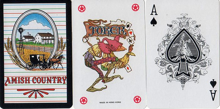 Amish Country. Here's the back, as well as the Joker (which I think is pretty cool), and the Ace of spades (which has a windmill, the only thing about any of the regular cards that is at all unique). I'm not positive when or where I got these, but it may have been sometime in 2003-05, when my sister and I were living in Ohio.
