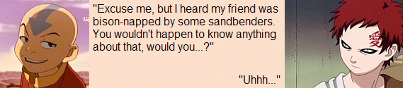 Aang from "Avatar: The Last Airbender" and Gaara from "Naruto."
