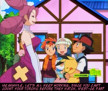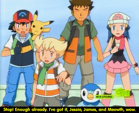 Barry, from one episode of Pokemon, interrupting Team Rocket's motto. For the most part he was kind of annoying, but that one line was really funny.