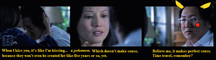 Hiro Nakamura and Daphne Millbrook from "Heroes." I really like both characters, and also I like Pikachu of course, so I loved that she called him that.