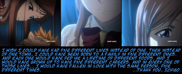 Orihime from "Bleach" finally admits her love for Ichigo, though he can't hear her. Very romantic, and very sad....