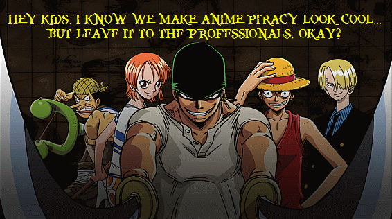 Something in the magazine Anime Insider inspired me to make this "One Piece" sig, featuring Usopp, Nami, Zolo, Luffy, and Sanji. (I ganked the image from here.)
