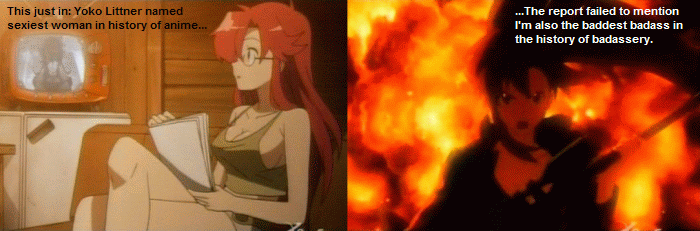 Yoko from "Gurren Laggan." Because, you know... she's ultra-sexy and a totally awesome badass.
