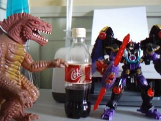 Hollywood Godzilla Brown: Hey, check it out, it's that new Vanilla Coke stuff!RiD Megatron: What manner of trickery is this?