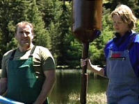 Anderson is feeling sorry for them. They are not making the big bucks he thought they would. All they have to is cross a bridge of two logs across a pond. Each player that makes it across earns $5,000 for the pot. There is, of course, a catch. You all remember the story of Robin Hood meeting Little John on the bridge and having to fight him?