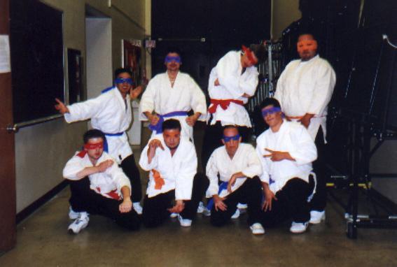 There were a lot of different kinds of dancers there, but there were only four other guys there for hip hop. All but two of the choreographers were students. The choreographer that I had known from SSF never showed up to practice and we heard rumors that he just dissappeared to Hawaii. The dance teacher told me to try out a practice to see if I liked it. Everyone was really nice and all the choreographers were looking for people to join their dances, but I decided to just do the hip hop / break dancing piece. That semester we choreographed the piece together with Jef leading. We got one more late arrival he was a breaker with a lot of experience. We had a lot of fun and I learned a lot. Of the four semesters that I was at Skyline College, I danced during three. These pictures are from my last dance performance. Our costumes were influenced by the Teenage Mutant Ninja Turtles.