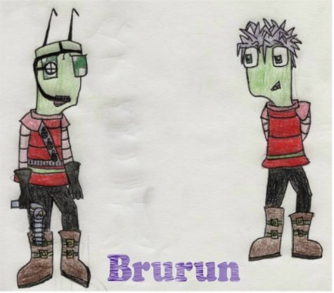 -Profile: Brurun came to Earth with his best friend Lexen to get away from the military, or more specifically, the bloodshed and killing of war. He can be intimidating at times- he's pretty big and good with weapons- but in reality, Brurun is nearly as harmless and nice as GIR and GIRT.