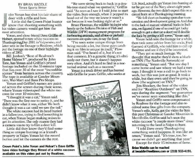 Another Article About The White Raccoon Click Here For www.wackyhoosiers.com Homepage