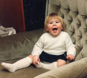 This photo is another favourite one of mine. When Rachel was this age she was a right little terror, running around biting people all the time, or gumming them. She used to say to mum 'I didn't bite her! I gummed her!' When we were little we saw alot of my family, not so much anymore but my mum has a very strong close relationship with her sister so we see a fair amount of that family. When we were small we used to have 'pizza party's' with my dads side of the family. We used to make up dances to Take That, The spice girls and whatever else was in at the time. |