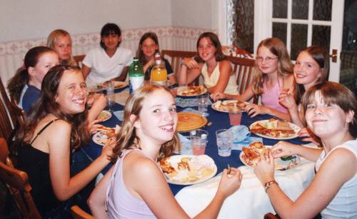 This is all of us on my birthday in year 7, bless us.......left to right.....Alice, Helena, Rhiannon, Nicole, Shafagh, Claire, Natasha, Carly, Charlotte and me.....this was the party in which Alice ran down the road with about 10 pairs of knickers on her head, Claire for some reason always brings that up!!!