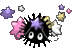 A white and black rabbit scurries passed you on the path through the courtyard. He stops, looks at you momentarily, then carries on. Following Lady Reaper, you're amazed at how everything seems to extend. The courtyard didn't seem this big from the castle balcony just like the meadows seem to extend forever. The feline-morph leads you into a garden of lillies and buttercups and flowers you've never seen before in colors you're sure don't even have names. Your hostess lets you wander ahead of her towards the ornate fountain. The rearing unicorn is carved out of a slick blue stone that you've seen around the island. It reflects the colorful surroundings like a mirage. You stare up at it until a little pink shroud flits by your nose. You watch the butterfly dance around and smile as its bobbing antennae tickle your cheek and nose. "Hm... the first warning sign is always the butterfly." Lady Reaper's foreshadowing voice creeps up behind you. You turn to face her and the butterfly turns with you. It flutters towards the feline and she extends her hand in greeting. It kisses her fingertips before disappearing into the flowers. "That little butterfly is the first of the crew." She smiles and takes a seat on the fountains edge. You look around waiting for the rest of the crew but only the wind drifts by lazily. You sit down and a something soft tramples over your fingers. You look down at the little white pony. Her long ivory hair and fluffy cloud-like wings lift her off her feet with the smallest breeze. You sit down on the edge of the fountain and smile at the little creature. With big doll-like eyes, she floats on the wind in circles around you and then skips across the water like a flat stone. As you watch her dance amongst the flowers, a strange tickling sensation attacks your hands. It feels like little eyelashes skittering across your fingers. When you look down at your hands, resting on either side of you, the sight of the little sootballs forces you to raise an eyebrow.![]() ![]()
