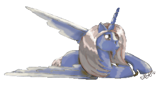 You hadn't noticed the two quiet figures amidst the flowers. Mostrly because they look like they've both been sleeping. The first is an electric blue alicorn with a wise look to him. As you approach, he snorts and shakes his ashen mane. He offers Nissa a little greeting and bobs his head to you."This is Eras. He is quite the gentleman. I love to hear him tell stories." Nissa gives the alicorn a gentle pat. He nuzzles her hand before stretching his wings and going back to sleep.