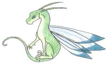 As you continue on, something buzzes passed your ear. Instinctively, you turn your head to the left but there's nothing. The buzz flies by your right ear and you turn again. Then it comes from the left, no the right, no wait it was the left... You spin around in a circle and huff. Lady Reaper giggle and you glare at her. Undaunted, she holds out her finger and a little green creature lands on her hand. It wraps its long tail around her wrist and part of her arm. Its wings continue to flutter rapidly, buzzing away, but it finally calms and sits down."This little dragon fly calls himself Kovu." Lady Reaper smiles. Kovu's four insect wings buzz rhytmically, almost like a purr, as she rubs her finger up and down his nose. You manage to get quite close to Lady Reaper before Kovu opens his eyes wide and stares at you anxiously. His wings buzz and you move no further. From this close however, you can admire his smooth emerald scales.