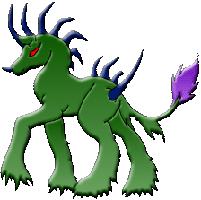 You jump back a few steps and gaze down at the small equine. He looks up at you with deep red eyes, his nose horn dripping with your blood, then charges at your leg again. You dance around him watching the cat-sized creature rear and charge at you with such furor you almost have trouble getting away. His purple spikes adorning his body manage to find your legs more than a few times. He keeps leaping passed you and kicking out so that the spike on his hindquarters strikes you. With your pants sliced and dozens of small cuts on your legs, you wonder if he'll ever give up. He looks up at you, seemingly grinning, and you raise an eyebrow in reply. He lowers his head and charges, flailing his neck spikes into your leg. You yelp. That one hurt!