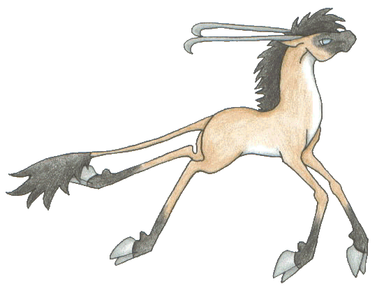 Opting to let Mei show you around, your first challenge is to get on the pegasus' back. Sensing your unease, Mei bows down for you and you easily slip onto her back. She jolts skyward and your forced to wrap your arms around her neck. With a few good beats of her wings, she's airborne and you're looking down. Instead of going very high, however, Mei stays seven or eight feet from the ground and circles around the mountain to a small hidden valley. You see three creatures come into view. A soft voice, like the wind echoed in a canyon, whispers in your mind: This small troupe of Deriss call the highlands home but their birth realm is The Nameless Forest.. ![]() The first is the colour of a cloudy blue sky with a long silky mane. The mare looks over her shoulder at you and tosses back her mane. Swaying her tail, she goes back to grazing on a clover patch. The name Kaori floats through your mind. ![]() The second is a shadow black stallion with a shock of brilliant blue hair. He watches you warily, bobbing his head to show off his wicked curved horns. They gleam in the clear sunlight peeking between the clouds. The name Senkai whispers in the back of your mind. ![]() As Mei circles around the small valley, a bright chestnut flash leaps up at you. The young colt clears a good five feet but comes up short. Mei whickers and the colt whinnies back. His white face accents his pale blue eyes as he watches you swoop over the valley once again. As Mei comes closer to him, you wave and he bobs his head. Leaping into a full gallop alongside you, he pulls ahead of Mei and leads you deeper into the valley. The name Jinja enters your mind and you smile. ![]() A buckskin mare races up to meet Jinja and they chase each other in a wide circle. The name Vyn plays through your mind. ![]() A bay stallion trots up a hillock warily, swishing his tail back and forth, as you fly overhead. He snorts as he pass but then offers a greeting nicker with a bob of his head. The name Shar enters your mind. ![]() Bounding up with more energy that the chestnust colt, a rust and brown calico Derissa starts to follow you. She whickers playfully but joins Jinja and Vyn in their joyful romp. The name Cerise seems to almost giggle in your mind. Mei flies onward Mountain Realm Entrance Lady Reaper |