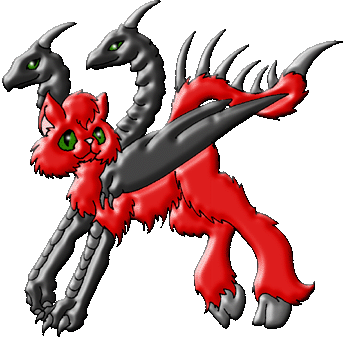 ![]() The portal from the Shadow Realm home spits you out almost indignantly at the foot of a delapidated castle. Only one tower stands solidly with one wall attached to it, the entrance you infer. The clouds above are dark and warn you of a strong storm's arrival. You take a few steps and gaze down at the murky waters of the moat. The water seems clear but mist and some other darkness obscures your view. You see something break the surface of the water then disappear just as quickly. You shiver and, at the sound of creaking, take a few steps back. The draw bridge falls down heavily granting you passage into the crumbling building. With a hastened pace, you make it over the bridge and into the center of what might have been the coutyard. The two towers infront of you are barely standing and the wall has crumbled to near-nothingness. Half an arch remains as an entrance to the castle and you slowly tiptoe to its side. A wooden sign gleams at you in the dimlight of a clouded sky. Its varnish shines and the oak seems freshly carved. You read the words burned into the wood: Death awaits A three-tuned growling hiss turns your attention to the inside of the roofless castle. A gigantic shadow is cast on the far wall lining a fanged cat and two Dragons! With a scream, you run madly back across the draw bridge and stumble forward into the grass. You pant like a fox that has outrun formidable hunters and try to regain your composure quickly so you may leave the area altogether. Something taps you on the shoulder and you whip around to be laying on your back with a smal yelp. ![]() An enchanting giggle catches your ears before you see Lady Reaper staring down at you. You're taken aback to see her here but then reality hits you in the back of the head: She's the Realm Keeper, she's supposed to be here. "What gave you such a fright, Fair One?" Her question is all too innocent, you know that she knows. You glare at her with a smirk as she helps you to your feet. "I can't imagine that Thade would attack you fiercely," she slips into a zone of deep thought trying to discover the root to your flight. You come out of shock and begin to tell your tale of horror and bravery. As you explain about the beast of terror, Lady Reaper falls into a fit of laughter. You stop recounting your story and just stare at her through narrow eyes. "Forgive me, Fair One," she snickers, "but the 'monster' you describe is none other than Thade, he's quite harmless." You blush vividly and follow Lady Reaper. You sigh in relief as she doesn't rub it in that you ran from the shadow of one of her bonds. Your pace begins to slow slightly as you approach the sign and half-arch. The cat-morph turns and takes your hand, leading you to the sign. She points to the word "Death". "It's an anagram of his name, Thade is Death, do you see?" She then moves her fingers below the terrifying phrase to smaller letters you didn't even notice before. "Here lives the prince of Bloodshadow," she reads, "Bloodshadow was the true name of a cat-mage that used to inhabit the castle when it was still standing. Thade took a fancy to these Ruins and its ancient Magick so I let him stay here. The creatures in the surrounding area have been calling him the Prince of Bloodshadow, he's got the same red coat, doesn't surprise me." With a smile, Lady Reaper disappears into the shadows through the entrance. Swallowing back your unease, you step passed the arch as well. You stagger about in the darkness until a flash of lightning illuminates the area and you see the shadow again. A bellowing roar of thunder seems to cue you to run like the wind and you bolt. You stop short though, leaning against the arch's remaining wall. A rumbling purr eases your panic and you listen as two chirrups join in the harmonious orchestra. The unique sound relaxes you and you regain your confidence. With a deep breath, you wait until your next cue from the lightning to return on the other side of the arch. ![]() ![]() You blink in amazement at the creature before you. He's as a big as a draft horse! A fusion of parts from different creatures. Torches begin to light with blue flames on the standing walls and even two or three float in midair. His tail sways like a wave, up and down, showcasing its formidable weaponry. His cloven hooves sing on the pavement that remains among the grasses. The two Dragon heads seem to move by their own will. He scrapes the ground with one of his bird-like talons, lowering his head shyly. "This is Thade," Lady Reaper scratches the him under his chin. "Greetings visitor, I..." Thade is interrupted by the mad chirruping of the two Dragons. One claps its jaws together making a clicking noise while the other still chirrups insanely. It seems their rage is directd toward Thade but quickly they begin to snap at each other. You see Thade roll his green eyes. "Chii and Nah may not be sentient but they're great amusement." Thade breaks out into chuckles as the two Dragons glare at him. Lady Reaper is sitting peacefully on what the time's passed may have been Bloodshadow's throne. Her legs draped over one armrest, her back against the other, tail swaying, she watches the two of you. Thade bounds up, with a beat of his clawed, feathered wings, to sit next to her. "Thade is a Whorling from Lanse'Shri. Such an adorable one at that!" She hugs him at the shoulder, the two Dragons wrap their necks around her. The sight reminds you of Norse knotwork with all that entanglement. "I don't quite remember how these two attached to my neck but very few from The Whorl remember much. All I can tell you is they are part of me." Thade grins toothily at your confusion, Chii and Nah follow suite with fanged smiles of their own. Lady Reaper giggles under her breath. "Best you find your way to Lanse'shri to learn of Whorlings. Anything with feline blood will never tell all." She leaves it at that before showering attention on the strange trio. You bid them farewell before walking off, you