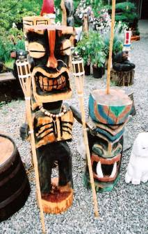 Chainsaw Carved Tikis made from cedar logs, sizes very up to 3 1/2' foot tall price $325.oo from 3 1/2' foot tall to 4 1/2' foot tall price is $425.00 up to 6 foot tall $675.00 Bigger than 6 foot tall please email me for prices, Shipping may be fright and is an extra cost email me for price of shipping.
