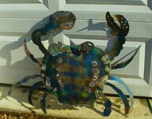 Metal Blue Crab Wall Art ,He can hang on the wall inside or out, they are rustic looking and there are dings and scrappes in the paint sizes do very and no two are a like $135.00