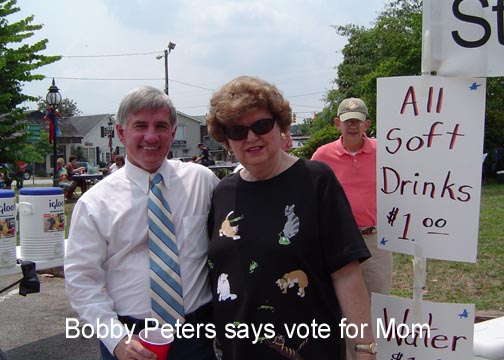 Our former Mayor, Bobby Peters, is running for Superior Court Judge. Mom and I ran into Mr Peters at a fair benefitting the Fire Department in Hamilton today. I asked Mr Peters if he would pose with mom for a picture for the site. He is now included in a kind of gallery that includes local celebrities posing with Mom. Mr Peters now joins Santa Claus and Smokey the Bear! I don't know about anyone else, but if I have to stand in front of a Judge, I just hope and Pray he is a good sport and has a sense of humor like Mr Peters! With the kind of trouble Mom and I get into we will need a Judge with those qualities. All kidding aside, Mr Peters would really appreciate the votes and support!