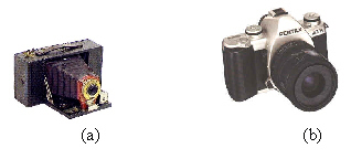 As máquinas fotográficas evoluíram muito. Antigamente, a objetiva da máquina fotográfica era constituída de uma única lente e atualmente, é constituída de várias lentes.