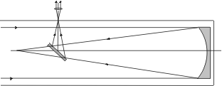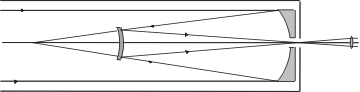 O sistema de Cassegrain é composto por um espelho secundário convexo hiperbolóide, que reflete a imagem para uma abertura no centro do primário, sendo então aí colocada a ocular para observação. Atualmente é mais utilizada a configuração Schmidt-Cassegrain na qual é colocada uma lente corretora na boca do tubo principal, que permite "fechar" todo o sistema, tornando-o mais compacto e resistente. Existem também telescópios Schmidt-Newton que, por serem mais curtos, se tornam mais fáceis de transportar que os Newton simples.