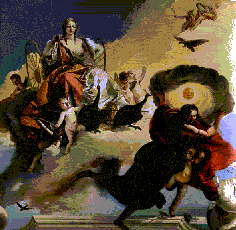 That's Queen Hera to you, folks. She steps into the clearing, proud and fiery-eyed, and not a bad figure either. She offers Paris dominion over all Asia if he picks her.