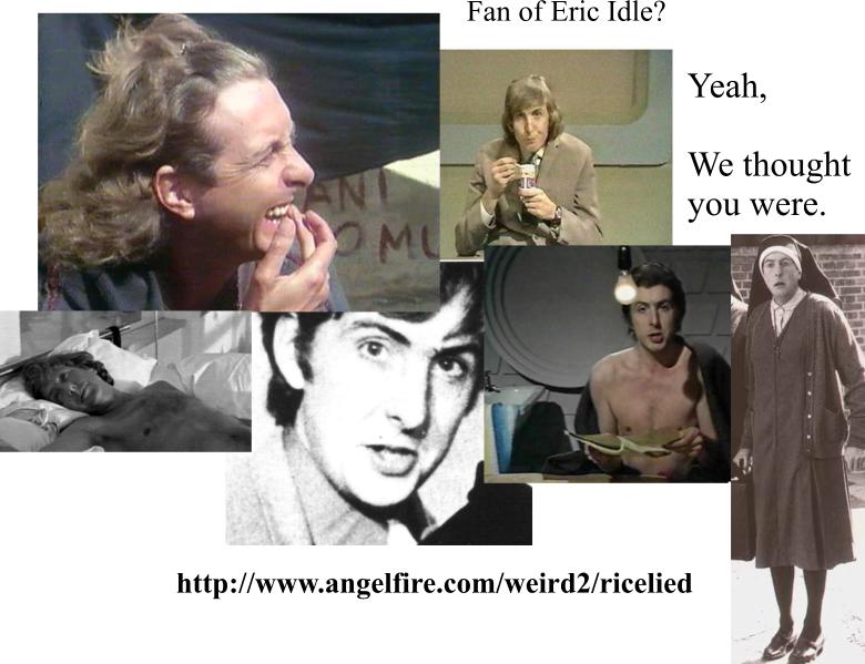 If you want to see some adorable pictures of our wonderful Idle, click on the Pictures Stolen From Other Webpages link. (Or, if you're looking for pictures of Eric in his birthday suit, click on the Say No More link.)