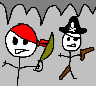 "Well they're not really pirates. They're just movie extras that thought they could get a part in 'The Goonies'. Legend has it that they heard there was going to be a new Spielberg movie with pirates in it. The extras didn't know that in the script all the pirates were already dead. They were never the same. It's a sad tale. One I'm sure you've heard many times before."