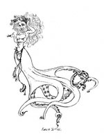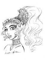 Name - Korillia Current Status - Alive Description - Korillia is quite tall for a WaveDancer, about 6 feet including her tentacles. In some ways she is a freak in the colony because of her hybrid form: half WaveDancer and half octopus (she is the victim of a patch of bad magic when her mother was pregnant with her). Korillia has a mop of red curly hair and violet eyes. Her tail is crimson with pink/purple suckers. Her tentacles have given her a purpose in the colony: she is the cook and has a special talent for turning anything in the ocean into foodstuff for the elves (except for octos with which she has an affinity). Korillia is quite temperamental and is a perfectionist. She has been known to cry into her cooking shells at times when she doesn't get her way. Korillia is a second born, but is barren. The squirts in the colony like to tease and play tricks on her. |