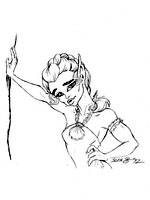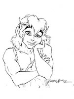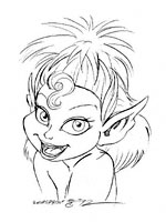 Name - Shoseabee Current Status - Alive Description - Shoseabee is quite an exotic elf with large almond shaped brown eyes, a snub nose and short golden hair. She is one of the Storytellers to the clan and loves to dance. She is easily influenced and doesn't think things through, and is perhaps a trifle frivolous. Shoseabee has two lovemates and a child to each of them: Lazik, who is the father of Sleia and Kadva, who is the sire of Inkbottom. Shoseabee is a fourth generation WaveDancer. |