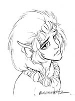 Name - Burdekin Current Status - Alive Description - Burdekin is the lifemate to Zadori, and father to Shoresprout. He has a mane of red hair framed by a headband of decorative shells. He is a fun loving and playful elf and is devoted to his family, but he is easily influenced and led astray by Sydor. Burdekin is also one of the storytellers to the colony, and takes an active part in festivities. |