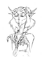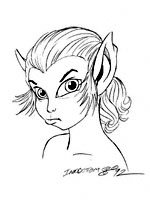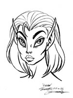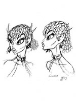 Name - Illora Current Status - Unknown (in the first WD series) Description - Illora is a Child of Recognition who was stolen when she was a small child. She is the daughter of Tilaweed and Hyfus, and has a small pixiesh face with long ears in her true form, and is quite distorted and grotesque in her altered form. She wears a head covering of polished coral to cover a bald head and has aqua-marine eyes. Illora was brought up with Shardon under Sydor's cruel hand, but she shares a love of music with her mother. |