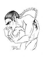 Name - Jormak Current Status - Alive Description - Jormak is slightly taller than his younger brother Barmek. He has long coal-black hair that is tightly drawn back and threaded through seashells giving it the appearance of a long braid. His eyes are a deep golden-brown and quite piercing. Jormak has a strong and powerful physique which he maintains through disciplined sporting activities. He tends to be self-absorbed and has complete disregard for the values and feelings of others. He is very much into the physical, not given to contemplation or development of his inner resources. He is the lead hunter with a fascination for inventing weapons for defence and conquest. He is cunning and shrewd and can be manipulative at times, and certainly not be laughed at for it would raise his wrath. With dark rugged looks and an intense sexual aggression, he is popular with many of the WaveDancers. His sire is Rhialdor, and his mother is Kirith. |