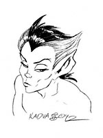 Name - Raenafel Current Status - Alive Description - Raenafel is a fourth generation WaveDancer and is destined to be the fourth Crown by her birthright. Brom and Ailsa are Raenafel's parents, and she was born a Child of Recognition. She stands taller than the average female WaveDancer, and can look most male elves in the eye. She has extremely long thick hair the colour of midnight, and her plush deep purple eyes are doe-like in appearance. In contrast to the other elves, Raenafel is a babe in the woods and knows nothing of the world except for what she learn from Brom's, Kirith's and No-Wing's teachings when she was hidden away. Despite her naivety and her lack of socialisation, she has tremendous powers: healing and flesh-shaping. Raenafel is a natural leader and does not shirk at the threat of danger, and she takes her role as the next Crown very seriously. |