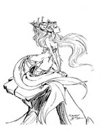 Name - Zadori Current Status - Alive Description - Zadori is the mother of Shoresprout and the lovemate of Burdekin. She is also the daughter of Maron and is a sixth generation WaveDancer. Even though she is quite young, she is a traditionalist not given to forward thinking. Zadori is long, sleek and sensuous, and has silver white hair and blue eyes. She is also one of the Storytellers in the community. |