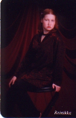Well, lets see... my name is Kaisa Reinikka (just incase you didn't figure that out yet. lol) I enjoy long walks on the beach and romantic evenings at home with a candle light dinner. oh wait! this isn't for a personal page... heh heh... ok. so seriously, I'm a drama freak. Yes, a freak. The auditorium in my school is my second home. I love it there. along with drama I also enjoy writing poetry and drawing. you can find some of my writings here and my artwork is here. I am currently a second year Senior in high school, and I'm not ashamed of it, though everyone else is shocked that I don't care that I didn't graduate with my class **shrug** oh well, people just don't understand me. I need two classes to be able to graduate, Biology and any other class I want. heh heh..... and guess what class they didn't sign me up for? that's right... Biology. so I can't graduate early even if I wanted to... but that's ok, I wanted to take the whole year so I could take a bunch of fun classes. **smiles** and so I could be in more plays, heh heh... drama freak, just like I said.