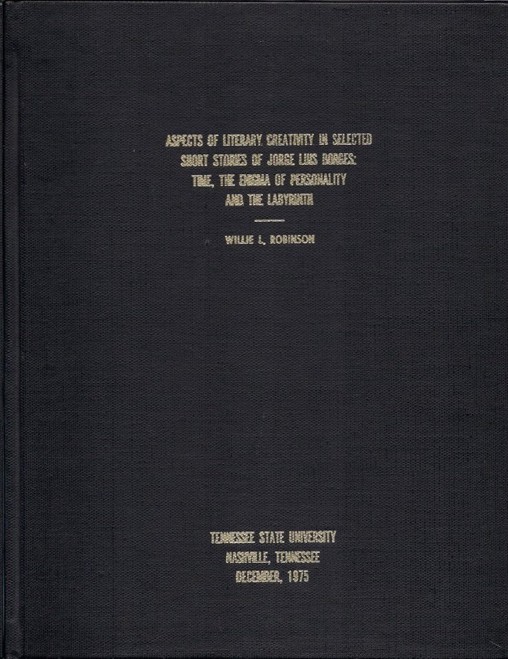When I relocated to Nashville, Tennessee from Jackson in 1970 with my family (wife and daughter), I had plans of earning a Masters Degree in Spanish at Tennessee State University and going back to Milwaukee to teach the language. ASPECTS OF LITERARY CREATIVITY IN SELECTIVE SHORT STORIES OF JORGE LUIS BORGES: TIME, THE ENIGMA OF PERSONALITY AND THE LABYRINTH, is the title of my thesis that is dated December 1975. It was the final requirement for the degree which was awarded in May of 1976. A copy of the thesis is in the library at TSU. It started with Aunt Kitty's book. Obviously, I decide to make Nashville my home rather than go back to Milwaukee to live as I had planned to do when I left Jackson.