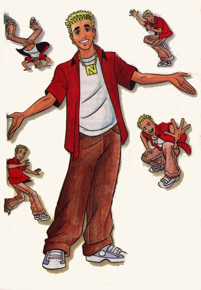 on his forhead, sketch in Justin's spiky hair.