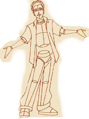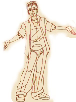 Drawing Justin's right foot is a little tricky.