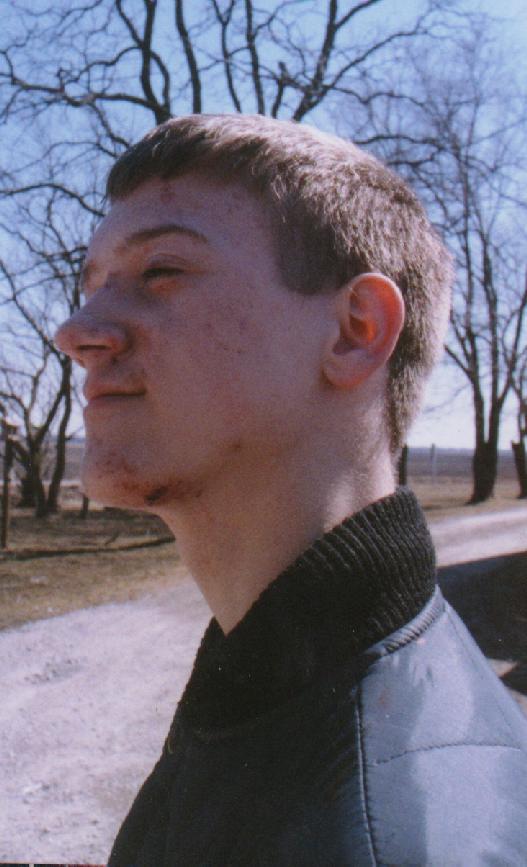 You can see the chin wound a bit better on this one. I really wonder what I looked like before I'd gone into the hospital, though...