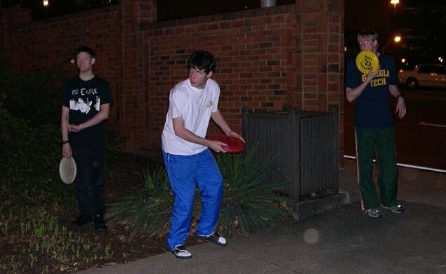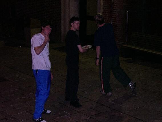 Our night began innocently... Eric (on the right) was trying to set up our goals and positions, while Bo (on the left) contemplated whether or not golfing tonight was a good idea. Something evil seemed in the air tonight... I just kind of looked around, like I always do.