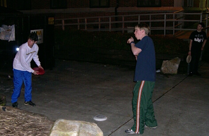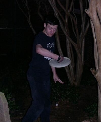Before we were rescued by a nameless hero who used a binding spell to contain the deadite spirits, we went on a frisbee golf rampage... of death! Here's a reporter's photo.