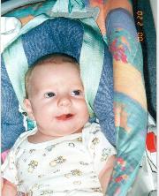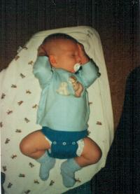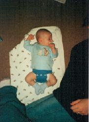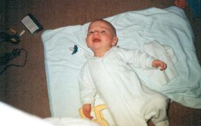 I don't honestly know all of his ages in these next 17 pictures, lol, I know shame on me...but I do know that they are in order of him being young to his most recent so I hope that helps a little bit...He's got dirty blonde hair now and gray eyes still..sometimes they are blue...as of May 18,2000 he was 27 and a half inches, 15 pounds 5 1/2 ounces...well I think that's about it..so enjoy...