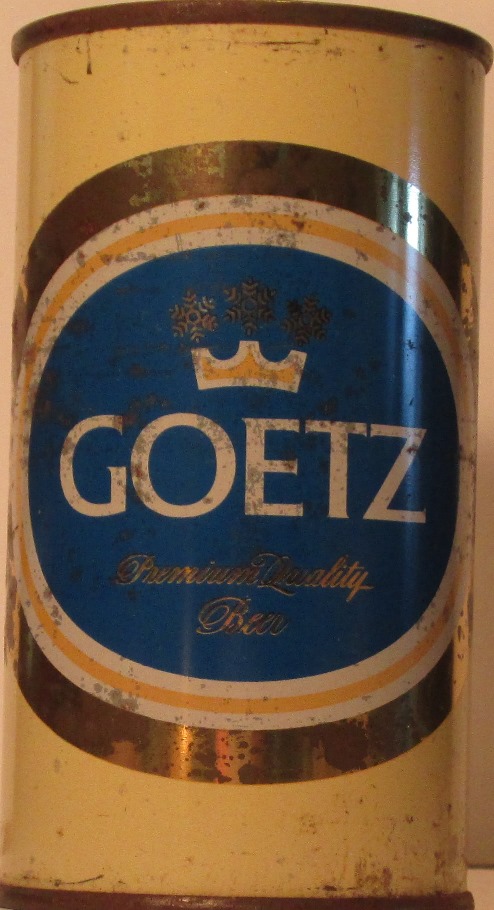 - BCU 73-34 GOETZ PREMIUN QUALITY BEER, CERTIFIED STRAIGHT BREWED, BREWED AND PACKAGED BY M.K. GOETZ BREWING CO., ST. JOSEPH, MISSOURI, U.S.A., CONTENTS 12 OZS., KEGLINED, GRADE 1-, FLAT-TOP, BOTTOM OPENED, $ 4.00
