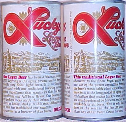- LUCKY LAGER BEER, OUR LAGER BEER/THISA TRADITIONAL LAGER BEER, THE WALTER BREWING COMPANY, PUEBLO, COLORADO, SS, PULLTAB, $ 8.00